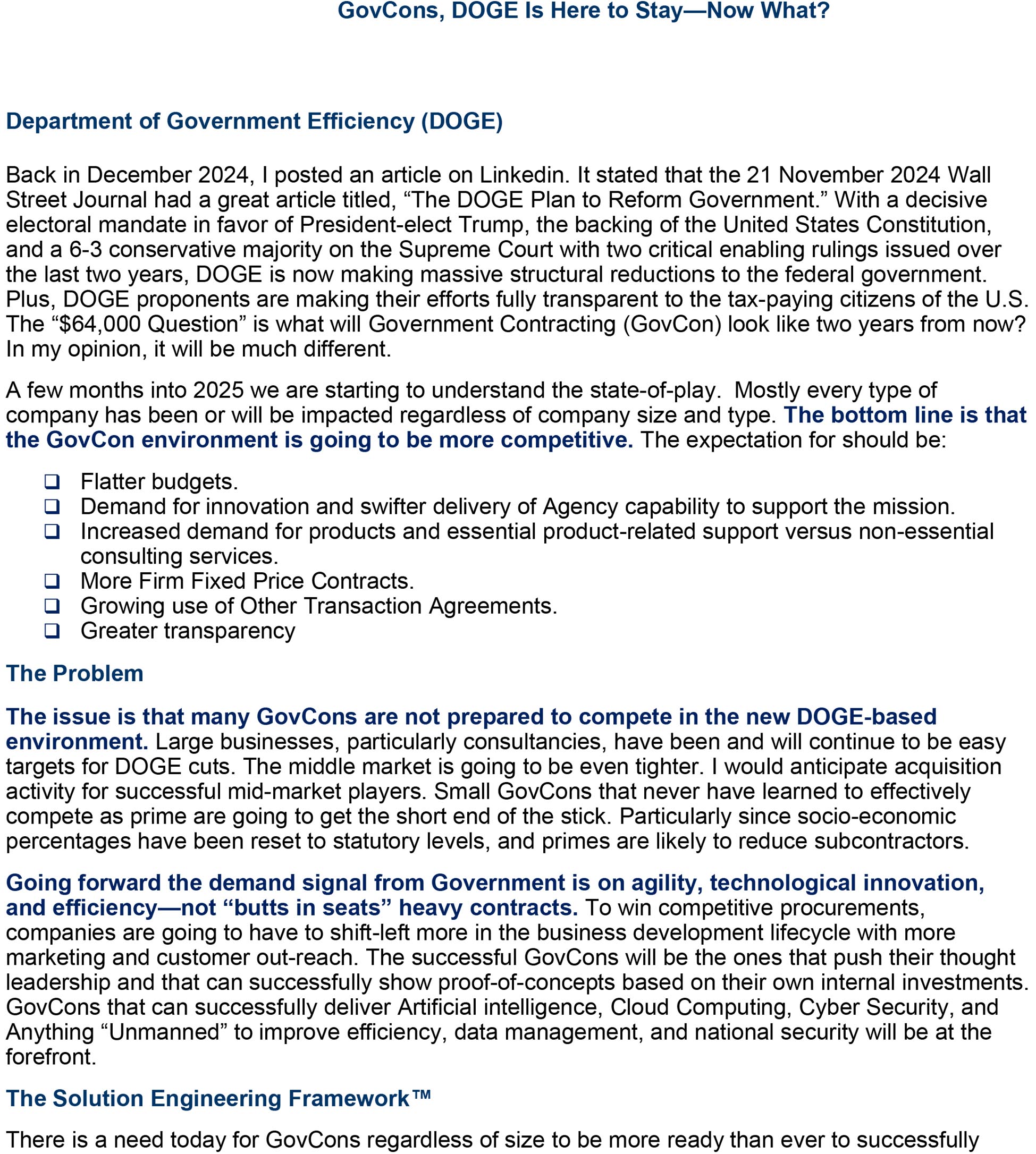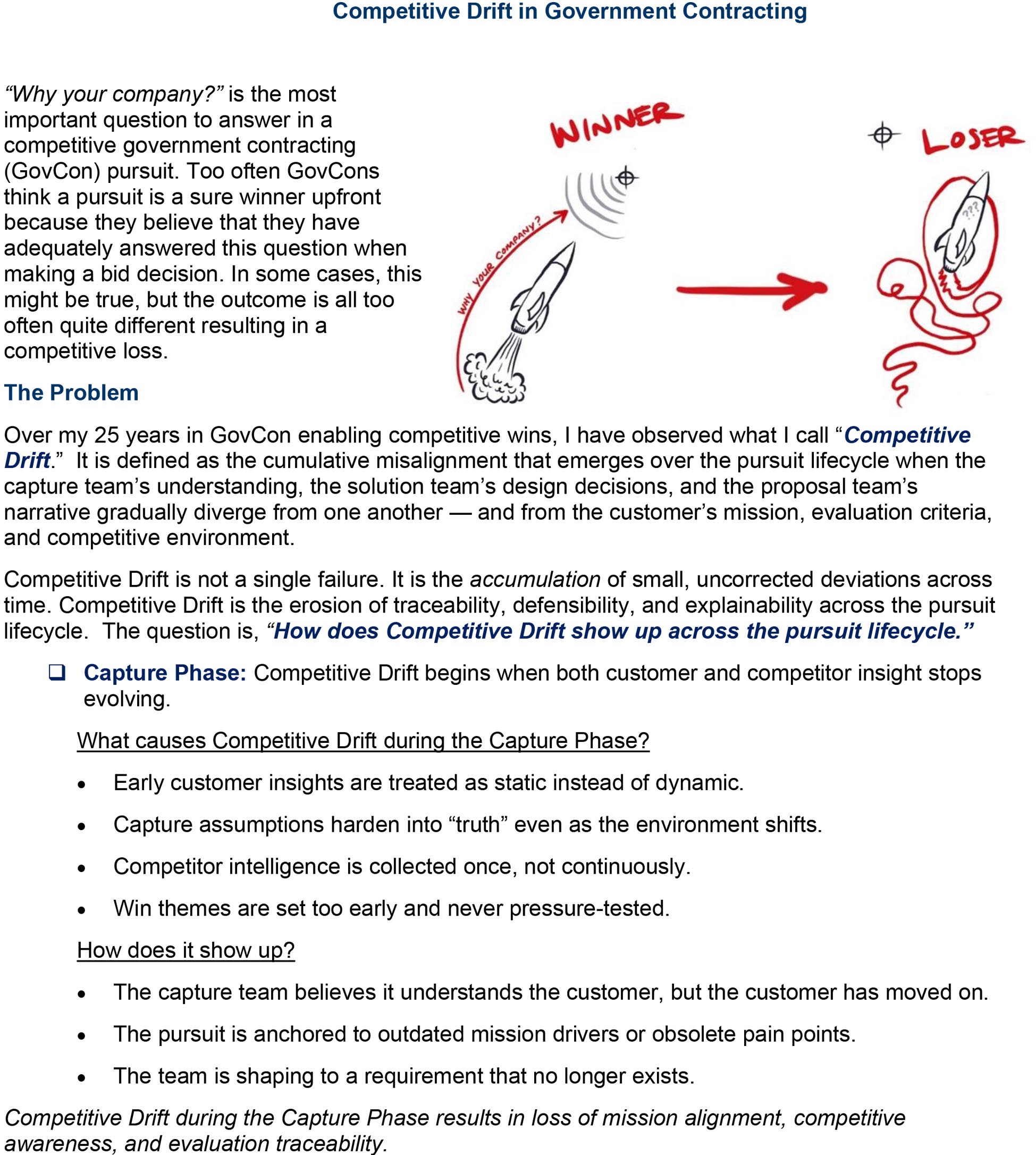 Welcome to Solutioneering’s “Points of View” Page.  Here we regularly share our thoughts on capturing competitive pursuits. We hope that you find them interesting, thought-provoking, and valuable with helping you win your next bid.